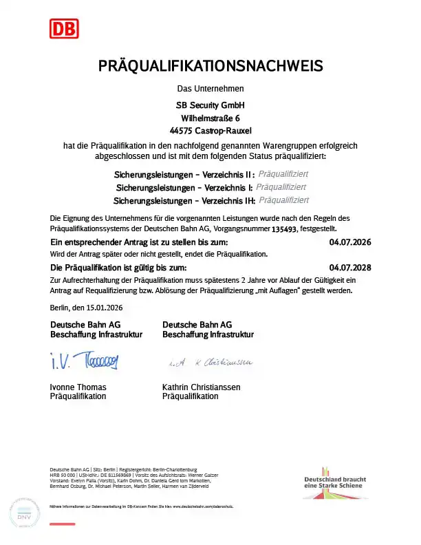 Professionelle Gleisbausicherung mit der SB-Security GmbH